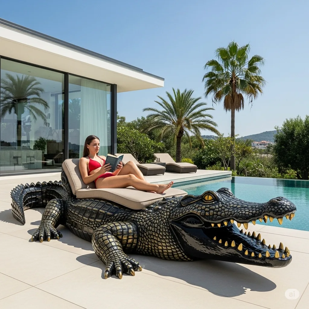 Crocodile loungers take this concept further by merging visual allure with ergonomic comfort. They are not mere decorative chairs but long reclining seats designed for extended relaxation, perfect for reading, unwinding, or enjoying an evening with family. The design recalls a lifestyle that balances strength and serenity—much like the crocodile itself, at once powerful and at ease in its environment.