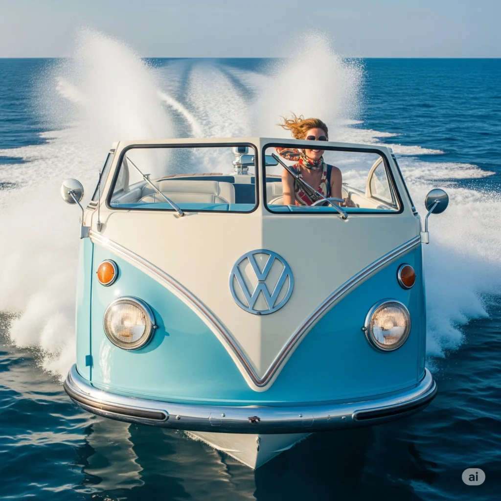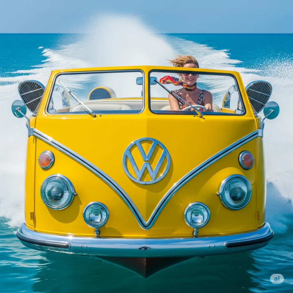 Climbing onto a VW Bus-Shaped Jet Ski is unlike stepping onto any other watercraft. At first, there is surprise. The familiar shape of the Bus, now floating, is both humorous and moving. It triggers memories before the engine even starts. Then, with a turn of the throttle, nostalgia transforms into exhilaration.